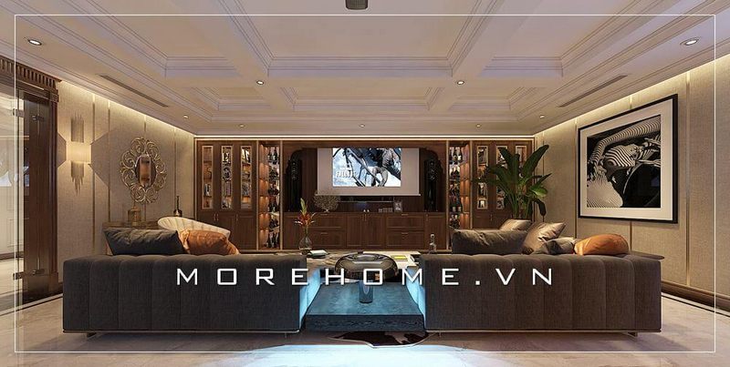 Thiết kế nội thất phòng khách biệt thự cổ điển cao cấp với phong cách sang trọng.